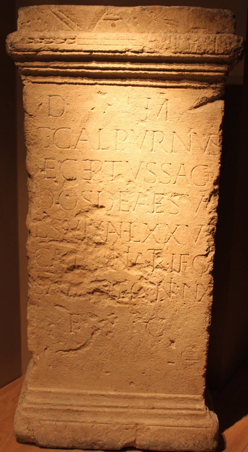 (Image ,Ancient Roman inscription in Bath. Grave of the priest of Sulis, Calpurnius Receptus. CIL VII, 53 ; RIB, 155)